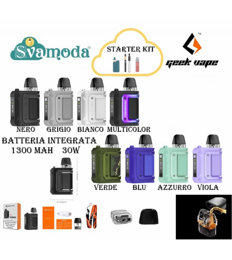 La sigaretta elettronica pod mod è compatibile con le cartucce della serie Q di GeekVape, incluse nella confezione (0.6O e 0.8O, con una pre-installata).