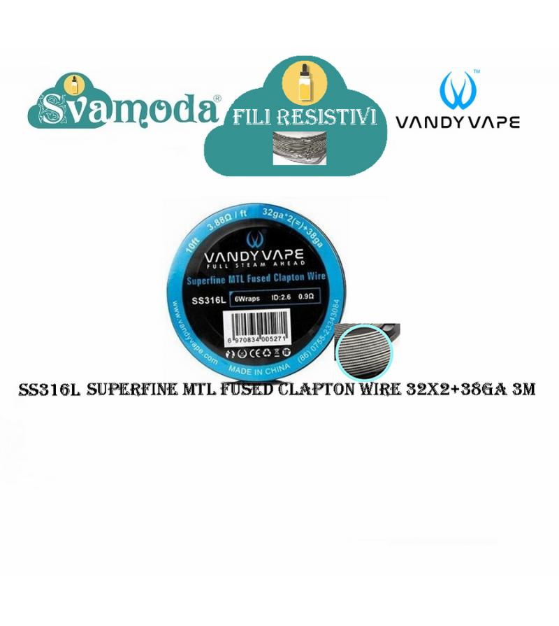 Filo Resistivo SS Fused Clapton Wire SS316L 24GAx2+32GA per atomizzatori rigenerabili per sigarette elettroniche.Lunghezza totale della bobina 3mt.